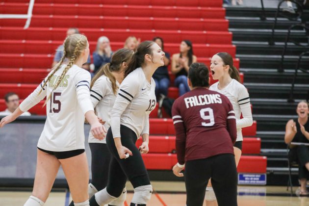 The Falcons were led by Smith with 17 kills, two aces and 10 digs, while Giesen had 16 kills, 11 digs and five aces.