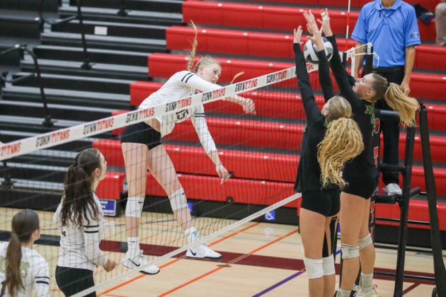 Harlan Hennager smashed seven kills and added two blocks, while teammate middle Makayla McDonnell contributed three kills and four blocks. Aila Papadopoulos connected for nine kills and added five aces and 17 digs. Dumesny passed off for 35 assists.