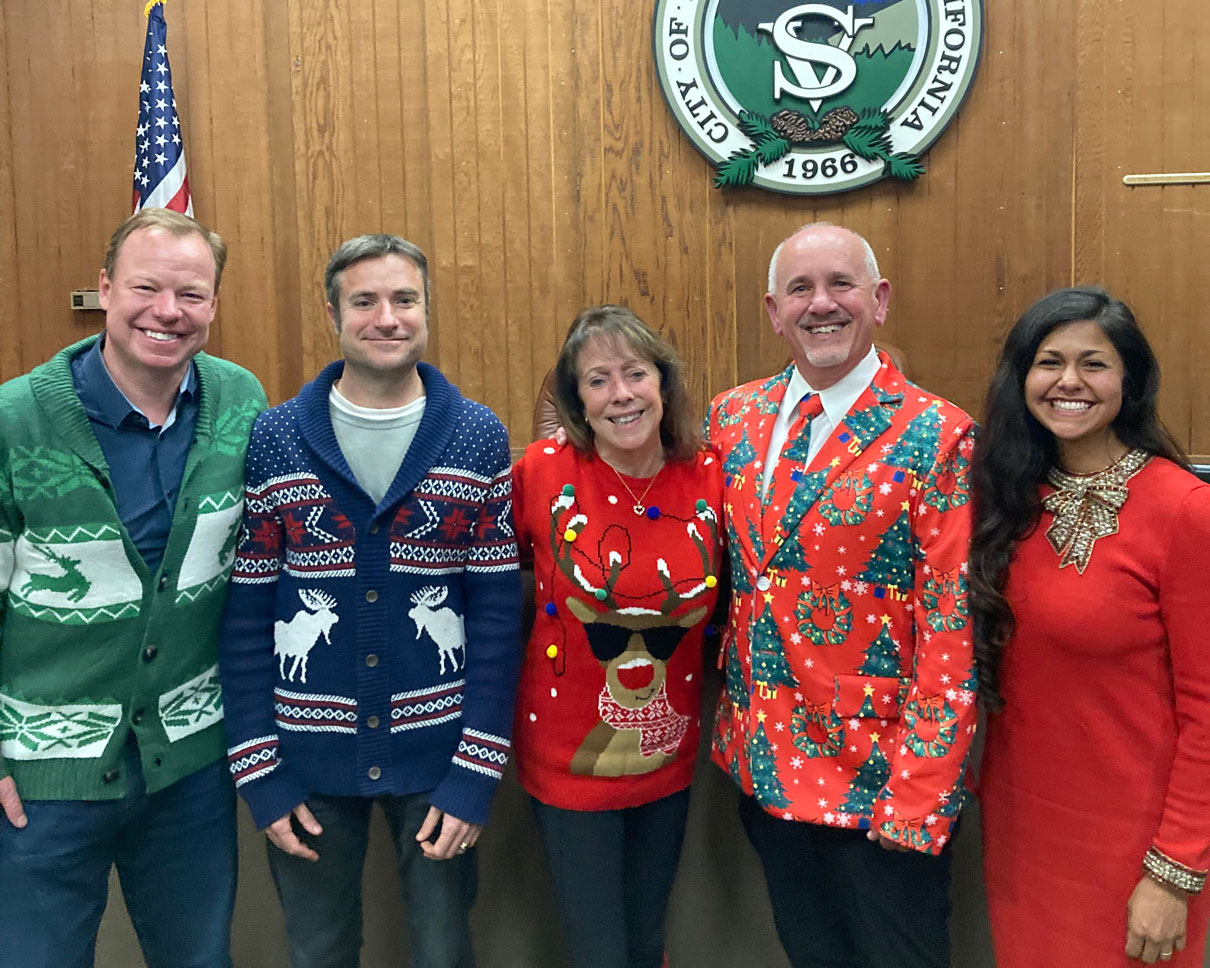 For Scotts Valley City Council all to be in sync, it took a quick hand-off of a mystery item by Kirsten Maure to her husband, Greg Wimp, the body’s newest member, as the Dec. 17 meeting began.