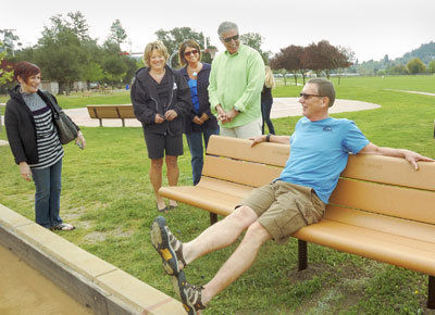 A contingent of Scotts Valley residents, business owners, and city staffers gathered Wednesday morning, March 27, at the bocce ball courts at Skypark to honor Conrad Sudduth, the retired longtime director of the city’s parks and recreation department, with the unveiling of a new park bench.
