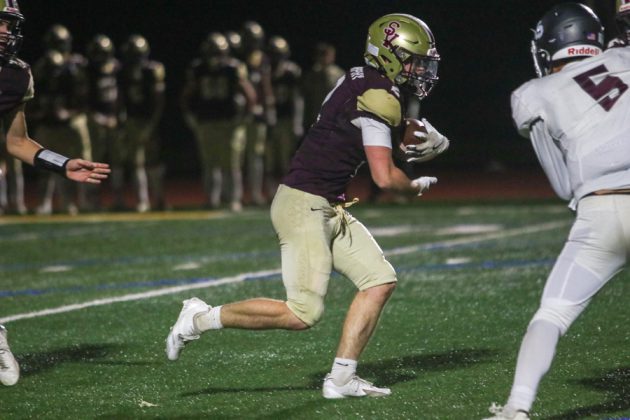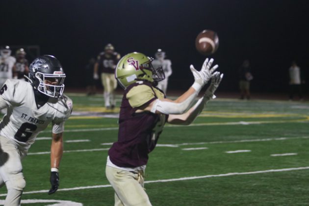 Scotts Valley senior quarterback Caden Kilpatrick responded by marching his team down the field on their ensuing drive. He hit senior receiver Isaac Currie with a 45-yard floater that set them up in the red zone on St. Francis’ 15-yard line.