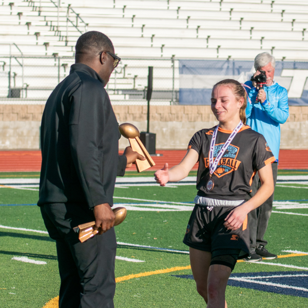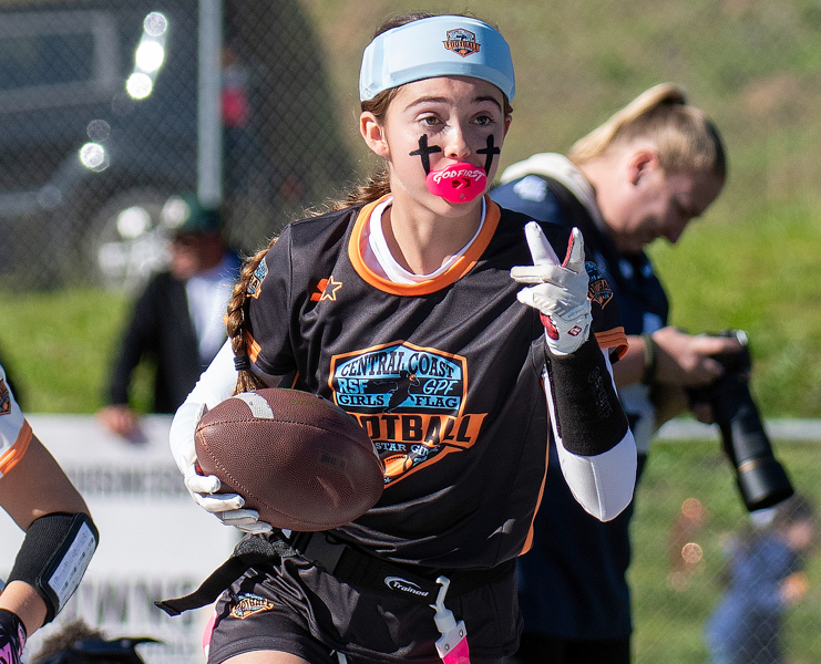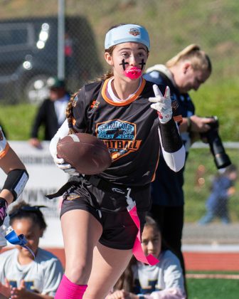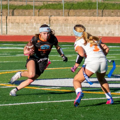 Scotts Valley senior Sammy Rebbert let it be known why she was selected to represent Team North at the Second Annual RSF/GPF Central Coast Girls Flag Football All-Star Game at Aptos High on Jan. 11.
